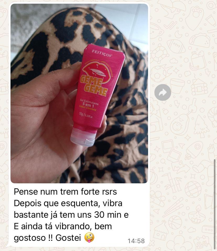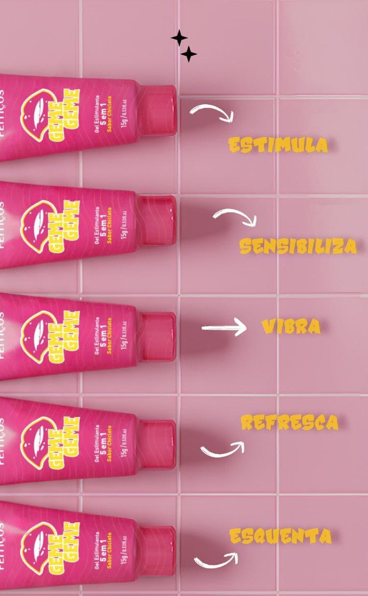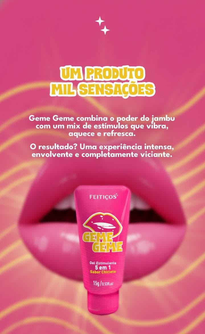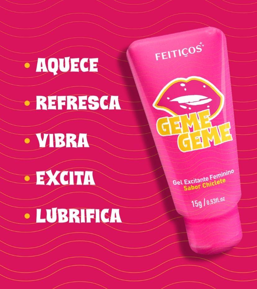 O gel excitante Geme Geme chegou pra fazer você delirar de prazer. Ele garante um prazer seguro e prolongado. Em contato com a região o produto provoca um mix sensações. O gel é elaborado com extratos naturais e tem textura leve e agradável. O Geme Geme proporciona sensações de vibração, pulsação, estímulos, excitação, lubrificação, sensibilidades, refrescância e aquecimento. Além de ter um delicioso gostinho de chiclete. Possui extrato de Jambu em sua formulação, tudo para potencializar sua satisfação e te deixar de perna bamba... Múltiplos benefícios para você ter múltiplos orgasmos!
